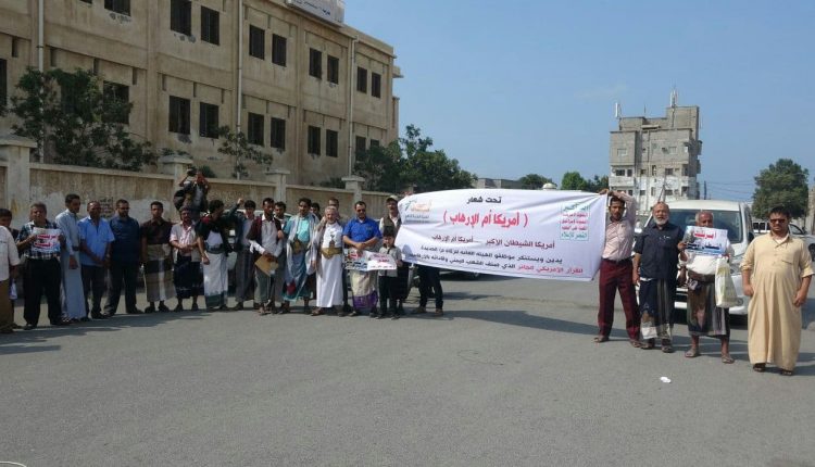 نظمت الهيئة العامة للزكاة ومكتب المالية بمحافظة الحديدة اليوم الثلاثاء وقفة احتجاجية للتنديد بقرار الإدارة الأمريكية بتصنيف أنصار الله ضمن قائمة الإرهاب تحت شعار “أمريكا أم الإرهاب”.