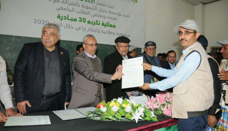 النعيمي والجنيد يكرمان 30 مبادرة مجتمعية وطلابية وابتكار زراعي بصنعاء
