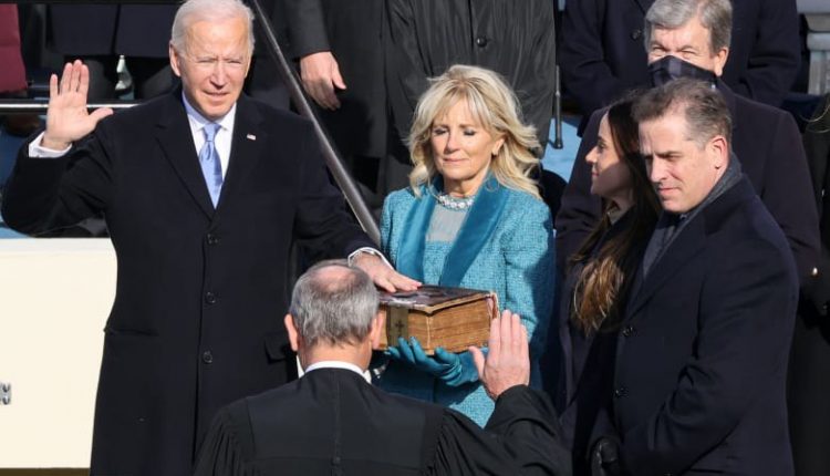 وبعد أن اعتلى منصة التنصيب واضعا يده على نسخة من “الإنجيل” تملكها عائلتها وتعود إلى 127 عاما قال بايدن: “أقسم بأن أخلص في أداء عملي رئيسا للولايات المتحدة، وسأفعل كل ما يمكنني فعله للحفاظ على دستور الولايات المتحدة وحمايته والدفاع عنه، فلتساعدني يا الله”.