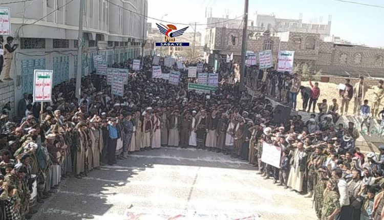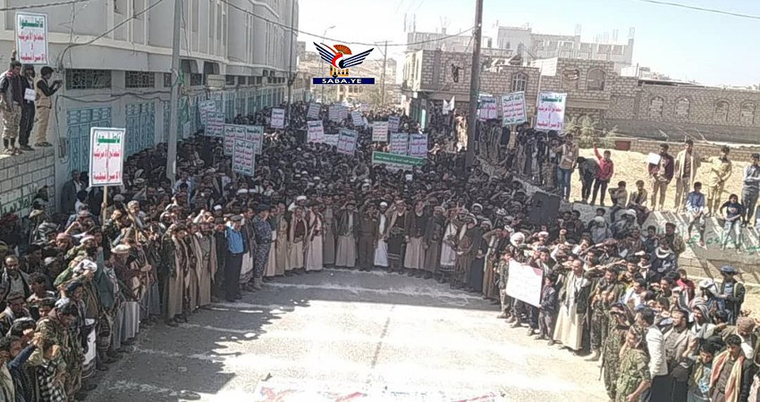 مسيرة جماهيرية في مدينة البيضاء رفضاً للإرهاب الأمريكي