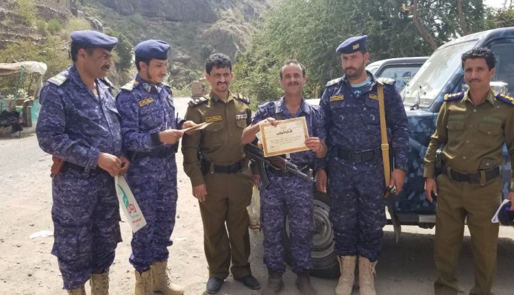 كرم وزير الداخلية أفراد نقطة الدرجة الأمنية في مديرية صعفان بمحافظة التابعة لقوات فرع النجدة.