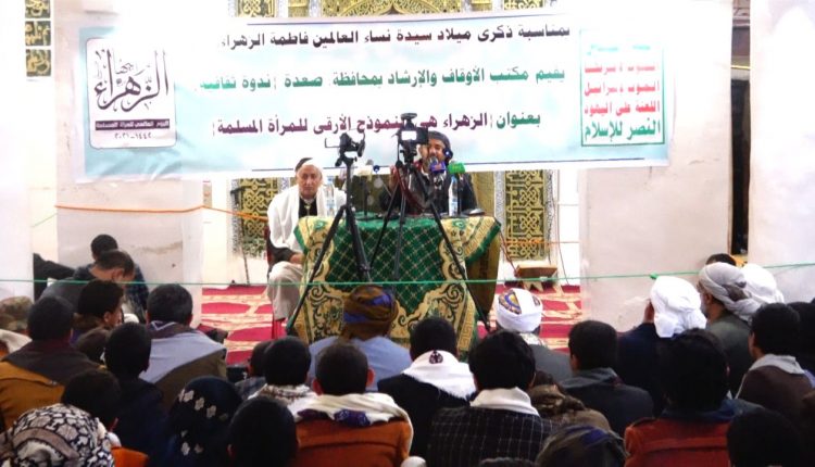 نظم مكتب الأوقاف والإرشاد في محافظة صعدة في رحاب مسجد الإمام الهادي عليه السلام ندوة ثقافية بمناسبة ميلاد بنت الرسول فاطمة الزهراء عليهاالسلام.