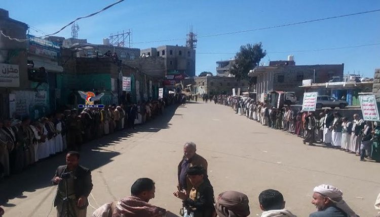 نظم أبناء مديرية الجبين بمحافظة ريمة اليوم وقفة احتجاجية حاشدة للتنديد بالقرصنة البحرية لتحالف العدوان واستمرار احتجاز سفن المشتقات النفطية.