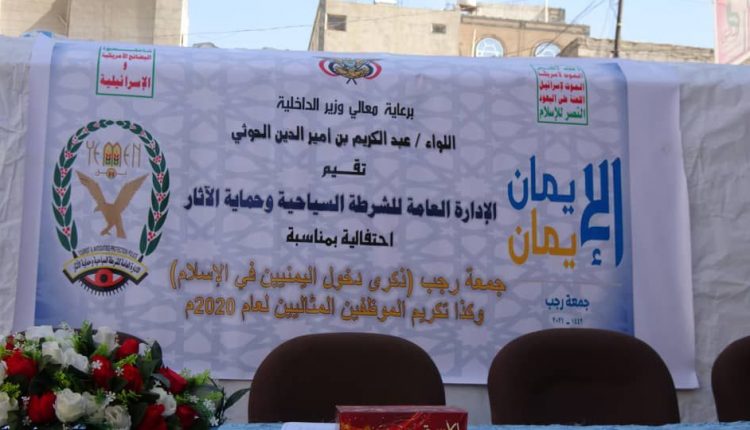 أقامت الإدارة العامة للشرطة السياحية وحماية الآثار فعالية ثقافية بمناسبة ذكرى جمعة رجب بحضور القائم بأعمال وزير السياحة الأستاذ أحمد العليي ورئيس أكاديمية الشرطة اللواء الدكتور مسعد الظاهري ونائب مدير عام الشرطة السياحية العقيد عبدالكريم الحاضري.
