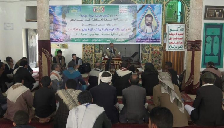 وفي الندوة التي حضرها مديرو المؤسسة المحلية للمياه المهندس أمين المغلس ومكتب الزراعة المهندس يحيى القدمي وفرع حماية البيئة علي الضلعي وفرع الموارد المائية إسماعيل المهدي والمرور العقيد فؤاد عامر، ونائب مدير فرع هيئة مياه الريف عبدالمجيد السنيني ومشرف المدينة عصام الوزان، أوضح عضو رابطة علماء اليمن عبدالمجيد شرف الدين، أهمية إحياء جمعة رجب يوم دخل اليمنيون الإسلام وناصروا الدين الإسلامي حتى اليوم.