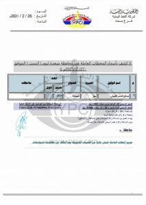 كشف بـ أسماء محطات شركة النفط اليمنية العاملة في نطاق امانة العاصمة والمحافظات “بنزين” ليوم السبت 27 فبراير 2021م وذلك من الكميات المضبوطة بعد إجراء الفحص والمعالجة اللأزمة .