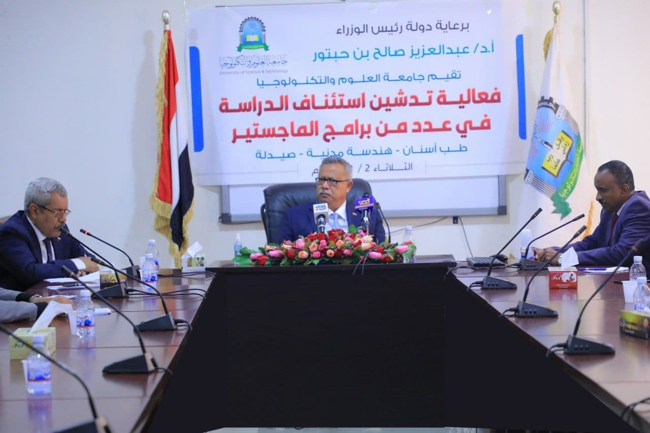 صنعاء .. رئيس الوزراء يدشن إستئناف الدراسة في عدد من برامج الماجستير بجامعة العلوم والتكنولوجيا