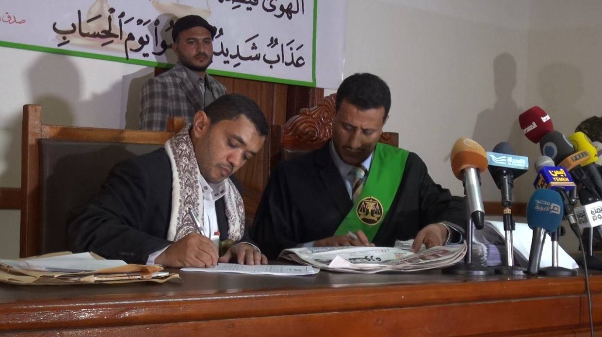 وفي الجلسة التي حضرها عدد من المجني عليهم واولياء الدم على سبيل الطرح وليس الحصر ، تم استعراض عرض المظالم الشخصية والمدنية، و قامت المحكمة بنصب خمسة محامين للدفاع عن المتهمين ،فيما طالبت النيابة العامة بمحاكمة غيابية وتنفيذ الاحكام والعقوبة ضد المذكورين حسب مانصت عليه مواد القانون بعد طرحها للائحة الجرائم والانتهاكات التي ارتكبها هادي ومن معه خلال الفترة الماضية .