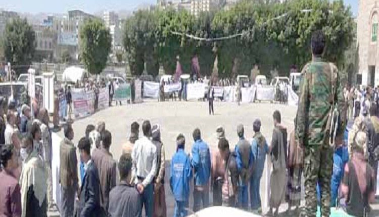 مسيرة حاشدة في محافظة إب تنديداً باستمرار احتجاز سفن المشتقات النفطية