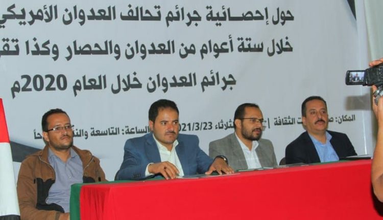كشف مركز عين الانسانية للحقوق والتنمية اليوم خلال مؤتمر صحفي عُقد في العاصمة صنعاء عن إحصائيات بجرائم العدوان الاميركي السعودي خلال ستة أعوام .