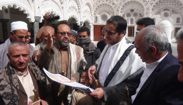 واستمع العلامة الحوثي ومعه نائب رئيس الهيئة الدكتور عبدالله علاو ووكيل الهيئة لشؤون المساجد والمبرات الدكتور عبدالله القدمي ورئيس فرع الهيئة بالأمانة عبدالله عامر، من مسئول الوقف بالجامع إبراهيم أبو طالب والمختصين إلى شرح عن الأعمال المنجزة في صيانة وترميم الجامع والتي بلغت نسبة الإنجاز 95 بالمائة.