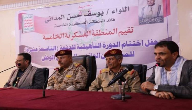 نظمت قيادة المنطقة العسكرية الخامسة اليوم الاثنين، بصنعاء حفل اختتام الدورة التأهيلية الـ 19 لعدد 54 من المغرر بهم من أبناء محافظتي حجة والحديدة الذين تركوا القتال الى جانب المعتدين وفضلوا العودة الى الصف الوطني.