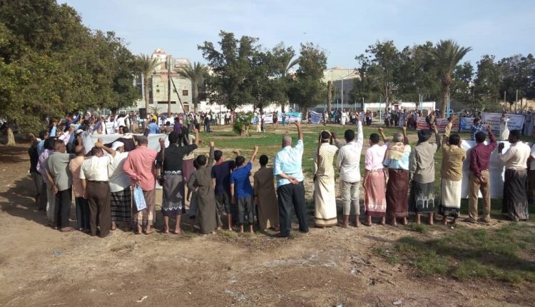وقفة احتجاجية للسلطة المحلية والقطاعات الخدمية بالحديدة تندد باحتجاز سفن الوقود