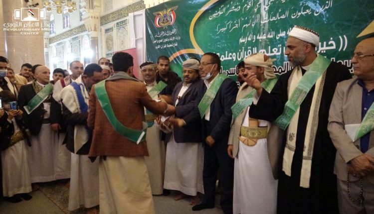 وفي حفل التكريم الذي نظمه قطاع تحفيظ القرآن الكريم بوزارة الإرشاد وشئون الحج والعمرة بالتعاون مع هيئتي الأوقاف والزكاة، للفائزين بالمراكز العشرة الأولى، هنأ عضو السياسي الأعلى الحوثي أوائل الجمهورية من حفظة القرآن الكريم ودورهم في حمل ثقافة الوعي والرؤية القرآنية الصحيحة.