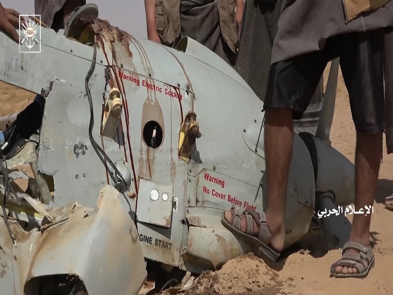 ووثقت العدسة الحربية مشاهد لحطام الطائرة المتطورة وهي من نوع CH-4 صينية الصنع والتي اسقطت بصاروخ ارض جو لم يتم الكشف عن نوعيته وتفاصيله بعد وفق تصريح متحدث القوات المسلحة العميد يحيى سريع .