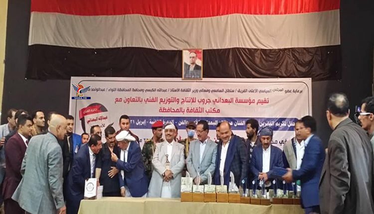 كما تم إهداء دروع مؤسسة البعداني للإنتاج والتوزيع الفني لعضو المجلس السياسي الأعلى السامعي ووزير الثقافة وقيادة المحافظة، لجهودهم في دعم الحركة الثقافية وتشجيع المبدعين.