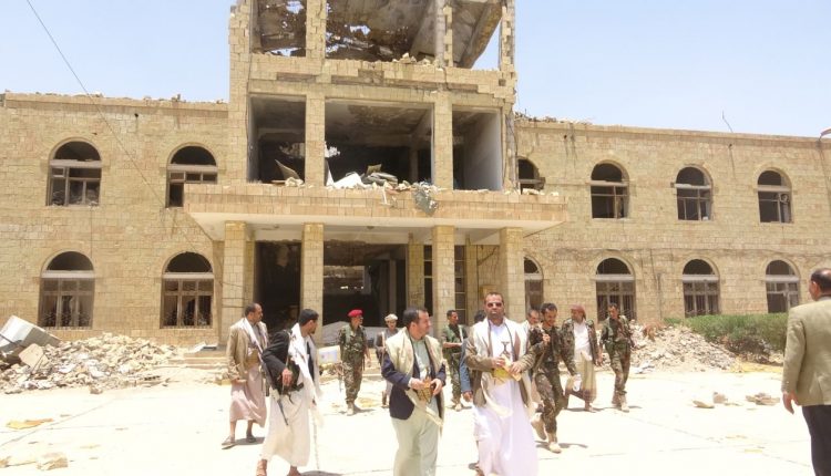 صعدة : الاطلاع على حجم تدمير العدوان مبنى المحافظة ومرافق حكومية مجاورة