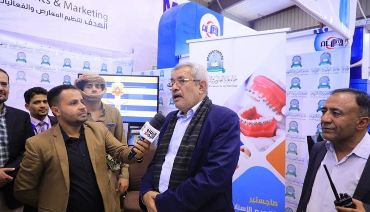 وزير التعليم العالي وعدد من قيادات الوزارة يزورون جناح جامعة العلوم والتكنولوجيا في معرض ميدكس بصنعاء