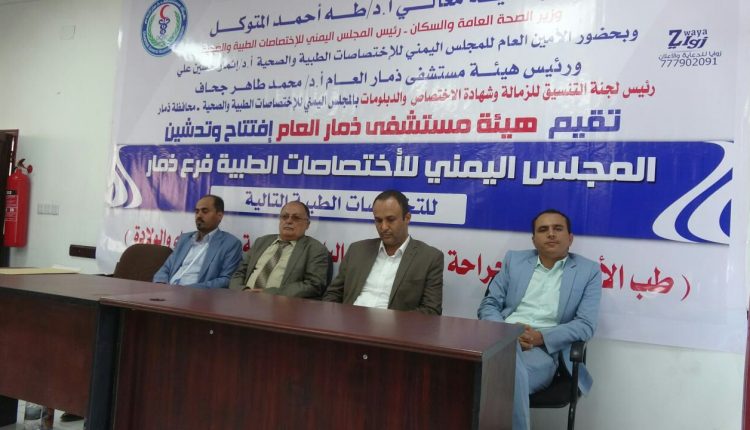 دشنت هيئة مستشفى ذمار العام اليوم انشطة ومهام فرع المجلس اليمني للاختصاصات الطبية في أربعة تخصصات طبية.