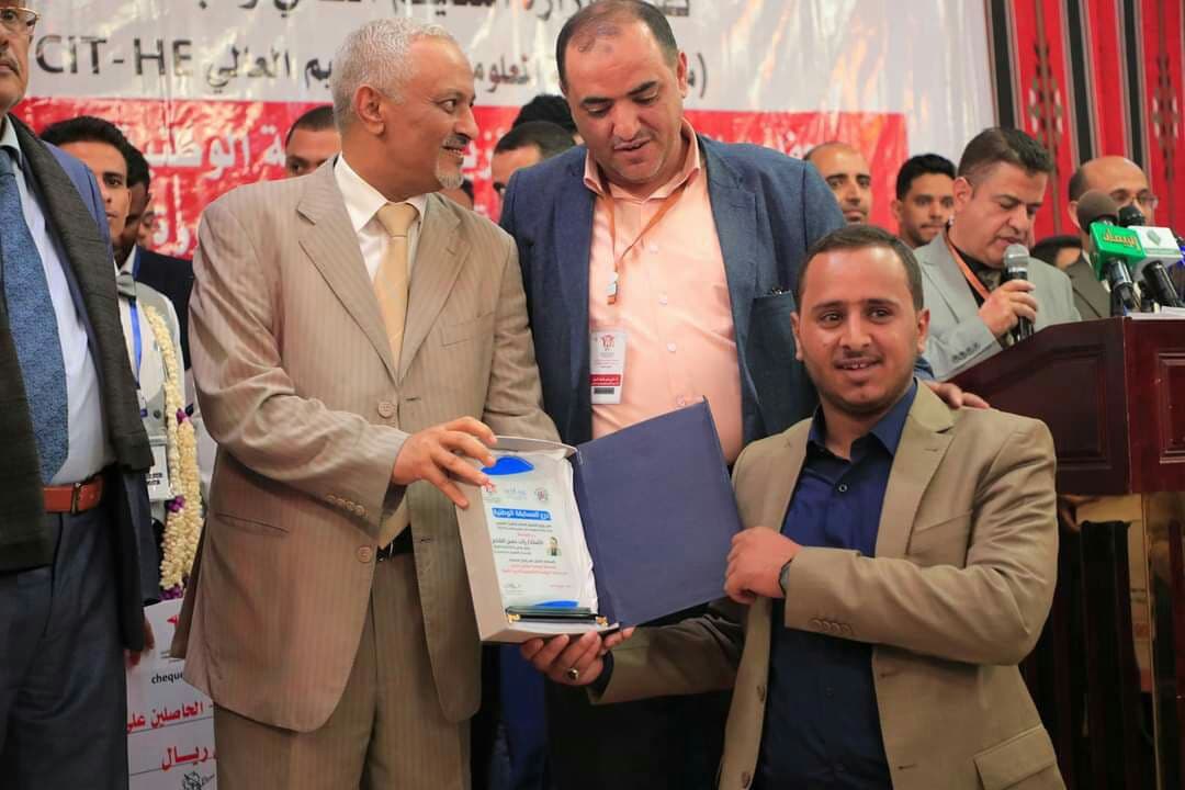 وفي ختام الحفل الذي حضره ، وكيل أول وزارة التربية ابراهيم شرف ، ووكلاء وقيادات وزارة التعليم العالي ومركز تقنية المعلومات ورؤساء ونواب الجامعات الحكومية والأهلية وممثلين عن القطاعين العام والخاص، تم تكريم الفائزين والداعمين والمنظمين بالدروع التذكارية والشهادات التقديرية.