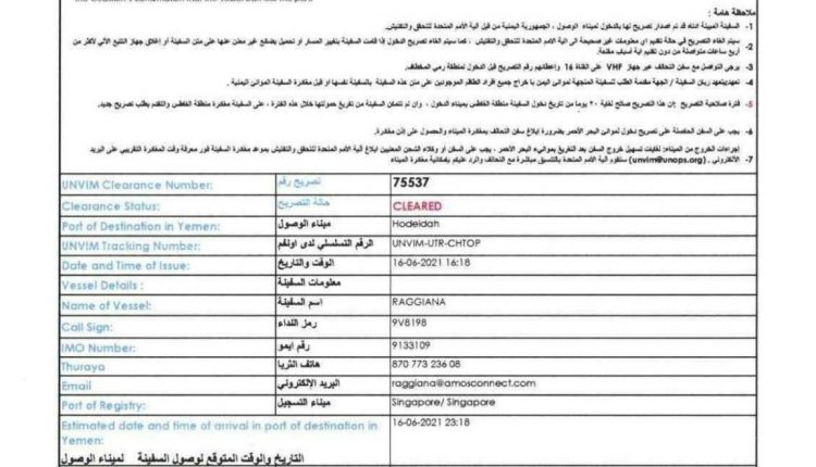 وأوضح المتوكل أن السفينة (راجيانا – RAGGIANA) احتجزتها قوى العدوان وتحمل كمية 8,867 طن من مادة #الغاز.