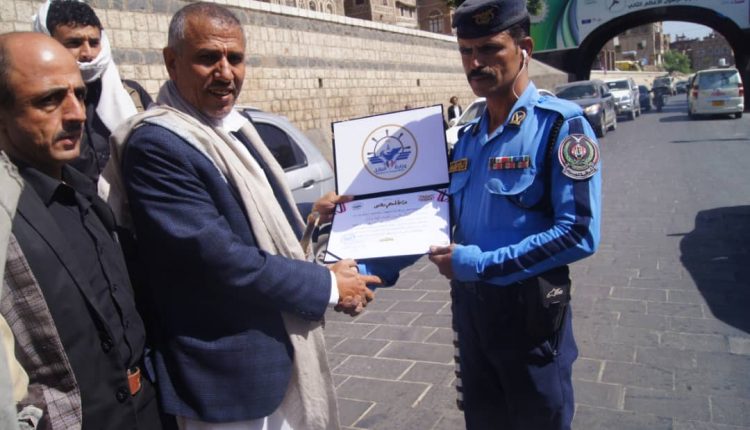 وزير النقل يكرم أحد رجال المرور بأمانة العاصمة