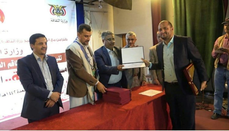 وتوجّه حمود شرف في كلمته بالشكر لوزارة الثقافة على لفتتها الكريمة المتمثلة في تكريمها لطاقم المسلسل والشركة المنتجة،كما توجه بالشكر أيضاً للأستاذ إسماعيل محمد المتوكل رئيس مجلس إدارة “شركة سام للبث الإذاعي والتلفزيوني” كونه كان المحفّز الأكبر لإنتاج هذا العمل الإذاعي الكبير والهام، مؤكداً أن إنتاج مثل هذا العمل الإذاعي المتميز والأول من نوعه قد مثّل بفضل الله تعالى انتصاراً كبيراً للجبهة الإعلامية والثقافية اليمنية في ظل مايعيشه البلد من ظروف اقتصادية صعبة نتيجة عدوان تحالف العدوان الأمريكي الصهيو سعو إماراتي وحصاره المستمر على اليمن.