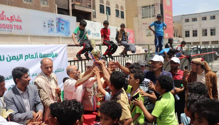 سلمت مؤسسة أنعام اليمن كأس البطولة لفريق مديرية التحرير لكرة القدم والذي احرز كاس المنافسة المقامة ضمن الانشطة الصيفية فيما حل فريق صنعاء القديمة ثانيا وفريق دار رعاية الأيتام السبعين ثالثا لينالا الميداليات الفضية والبرونزية.. كما تم تكريم المبرزين في مختلف الأنشطة الثقافية والاجتماعية المقامة ضمن انشطة الصيف بدعم مؤسسة أنعام اليمن في هذه الدورات الصيفية بمشاركة فرق تمثل مختلف المديريات بالعاصمة.
