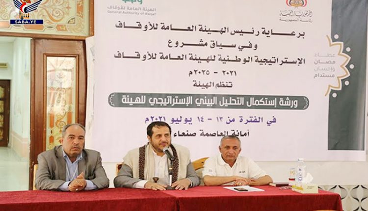 وقال العلامة الحوثي في اختتام ورشة عمل حول استكمال التحليل البيئي الاستراتيجي للهيئة العامة للأوقاف اليوم بصنعاء” لابد أن نخرج من الورشة بنتائج صحيحة من واقع الميدان ليتم على أساسها اغتنام الفرص وتجاوز التحديات والشروع في البناء التنظيمي للهيئة وخططها واستراتيجياتها”.