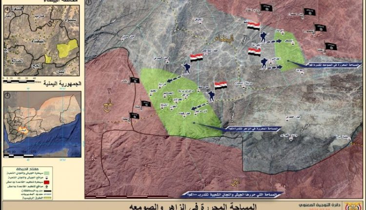 وكشف العميد سريع أن عملية “النصر المبين” أدت لاستعادة المناطق وتحرير أخرى بمديريتي الصومعة والزاهر وبمساحة إجمالية تبلغ 100 كم مربع.