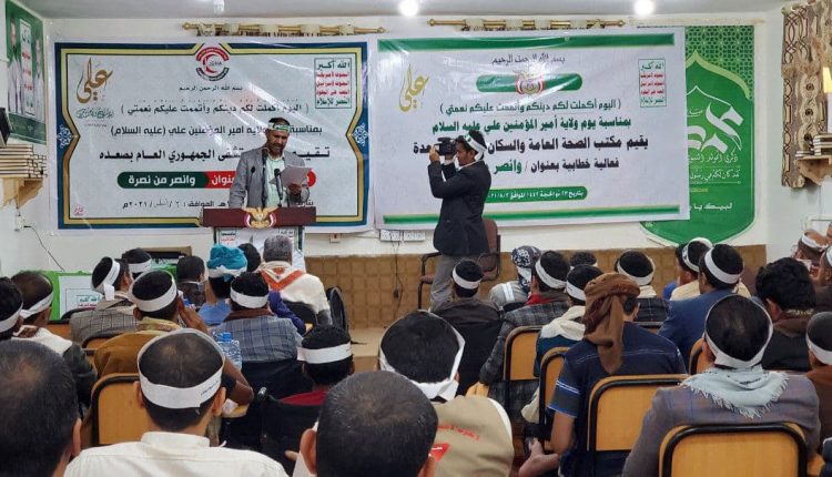 نظم القطاع الصحي بمحافظة صعدة فعالية خطابية بذكرى يوم الولاية تحت شعار “وانصر من نصره”.