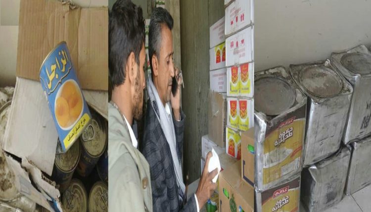 ضبط فرع مكتب الصناعة والتجارة بمديرية بني حشيش محافظة صنعاء أكثر من نصف طن من المواد الغذائية منتهية الصلاحية.
