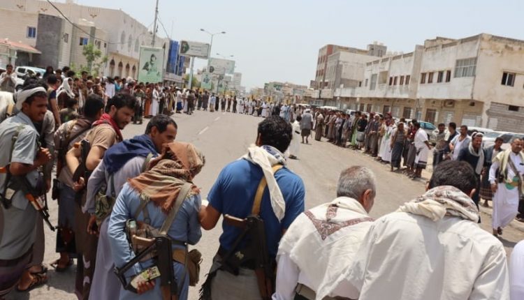 ونددوا في وقفاتهم الإحتجاجية عقب صلاة الجمعة بالعدوان واستمرار إحتجاز سفن المشتقات النفطية والغذائية وتضييق الخناق على مدينة الحديدة في عمل جبان ومناف للمواثيق الدولية والأخلاق الإنسانية .