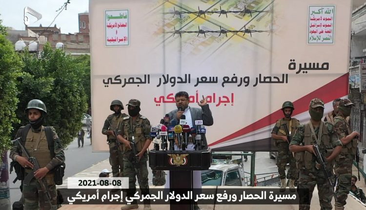 وفي كلمة ألقاها خلال المسيرة الجماهيرية الحاشدة في العاصمة صنعاء، عصر اليوم الأحد، قال محمد علي الحوثي: “القانون الدولي لا يسمح لأي دولة أن تحاصر الشعب اليمني”، مؤكداً أنه “بحصار اليمن أثبت تحالف العدوان أنهم يستهدفون الكل دون استثناء”.