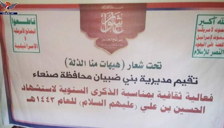 نُظمت في مديرية بني ضبيان محافظة صنعاء اليوم الجمعة، فعالية ثقافية لإحياء ذكرى استشهاد الإمام الحسين عليه السلام.