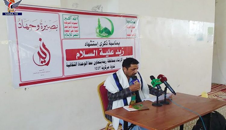 وتطرقت إلى دلالات إحياء هذه الذكرى وولاء وارتباط اليمنيين بأئمة الهدى, وأهمية الاقتداء بنهج الإمام زيد في مواجهة الطغاة والمستكبرين.
