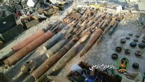 وبين العميد العجري ان المعمل والمخزن التابعين للجماعات التكفيرية يحتويان على 15 لغما أرضيا و9 عبوات متفجرة فردية، و151 قذيفة متنوعة كانت جميعها معدة لاستخدامها كعبوات ناسفة.