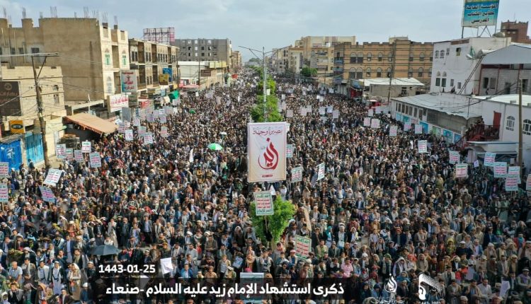 يمانيون – صور جوية لمسيرة إحياء ذكرى استشهاد الإمام زيد عليه السلام في العاصمة صنعاء 25-01-1443هـ