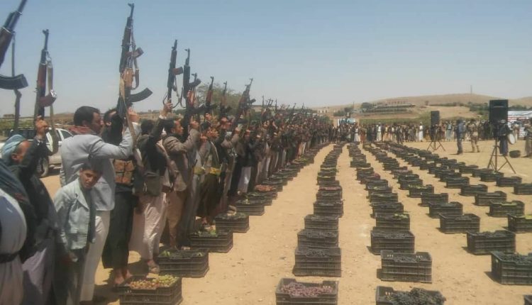 بني حشيش تقدم القافلة الرابعة من الأعناب خلال وقفة قبلية مسلحة بذكرى ثورة 21 سبتمبر”
