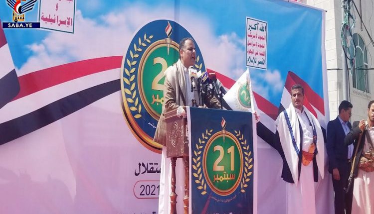 ولفت إلى أن ثورة 21 سبتمبر ثورة شعبية حملت القيم والمبادئ وطردت عملاء أمريكا وإسرائيل الذين حاولوا إفشال الثورة بشن العدوان على البلاد.. لافتاً إلى أن أمريكا وحلفائها لم يتمكنوا من كسر إرادة الشعب الذي يستمد طاقته وقوته من هويته الإيمانية وثقافته القرآنية.. مؤكداً الاستمرار في رفد الجبهات والتحرك مع كل الأحرار لتحرير الوطن.