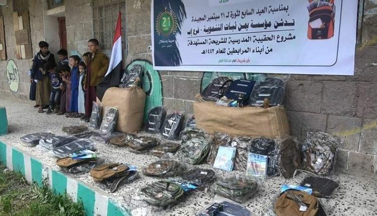 يمن ثبات تدشن توزيع 1200 حقيبة مدرسية بإب لأبناء المرابطين