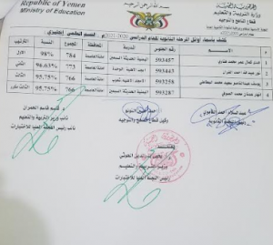 يمانيون – أعلنت وزارة التربية والتعليم نتيجة اختبارات الثانوية العامة للعام الدراسي ٢٠٢٠/ ٢٠٢١م بنسبة نجاح 79.19 بالمئة.