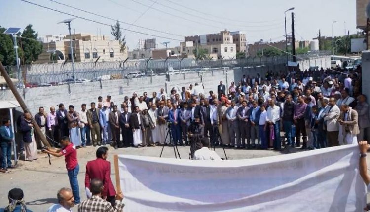 وقفة لموظفي شركة النفط وقطاع الكهرباء تنديداً بالحصار واستمرار احتجاز سفن الوقود
