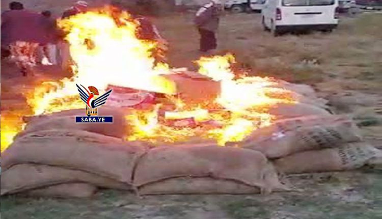 ضبط وإتلاف بُن خارجي مهرب في منفذي جمارك ذمار وحزم الجوف