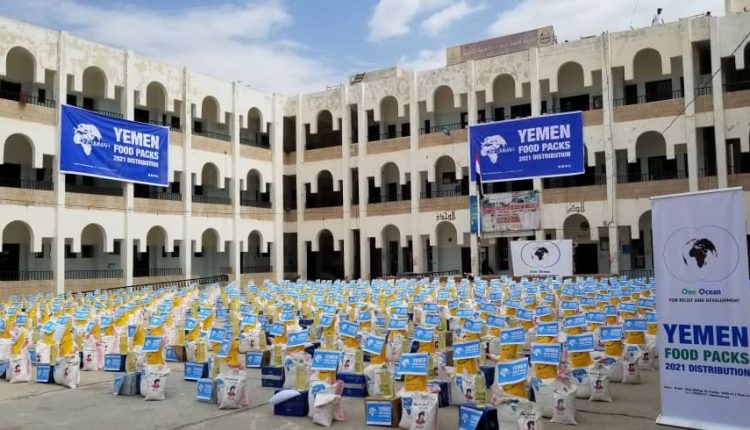 وزعت منظمة محيط واحد اليوم بالتنسيق مع المجلس الأعلى لإدارة وتنسيق الشؤون الإنسانية والتعاون الدولي، سلال غذائية على المعلمين في مديرية الثورة بأمانة العاصمة بمناسبة المولد النبوي الشريف.