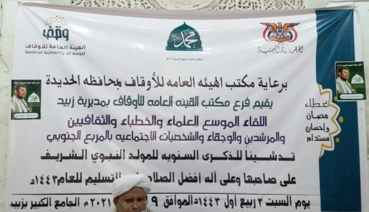 وفي اللقاء الذي نظمه فرع مكتب الهيئة العامة للاوقاف بالمديرية بالتنسيق مع مكتب الهيئة بالمحافظة أشار مدير الفرع محمد البحر إلى عظمة المناسبة وأهمية إحيائها تأكيداً لحب النبي المجتبى في نفوس اليمنيين.
