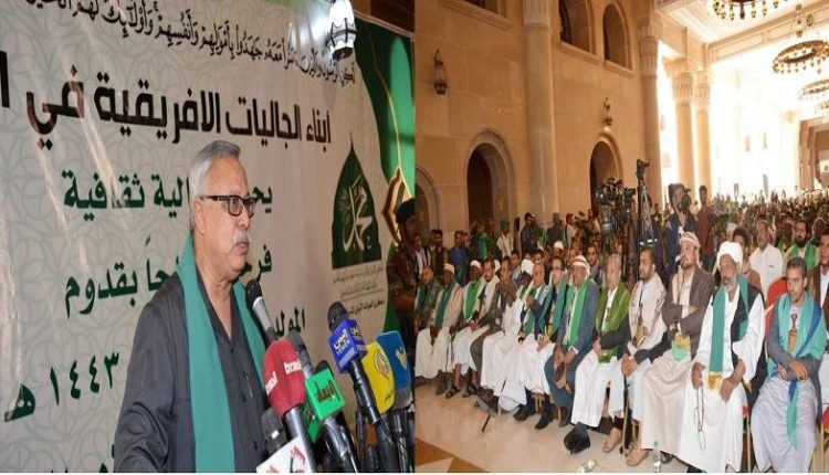 وتابع مخاطبا الأشقاء الأفارقة: “أنتم تحتفلون هنا برعاية قائد الثورة الحبيب عبدالملك بدر الدين الحوثي، وأنتم في رعايته وتحت رايته، ولا ريب أنكم لا تشعرون بغربة في اليمن، لأن شعبنا لا يشعر على الإطلاق أنكم ضيوف بل يعتبركم جزءا منه”.