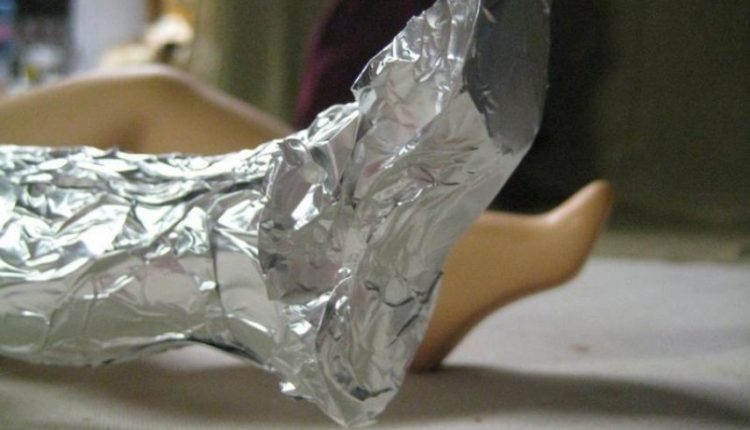 ويكمن سر هذه الطريقة بتغليف القدمين بالالمنيوم لمدة ساعة من الوقت، وذلك عن طريق وضعها بعدة طبقات حول القدم وفصل الطبقات عن بعضها بالقليل من قطع القطن.