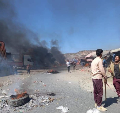 وأحرق المحتجون الإطارات وأضرموا النيران في الشوارع وقطعوا الطرقات، مرددين هتافات ضد السلطة المحلية وحكومة المرتزقة، التي اتهموها بالفشل والوقوف وراء الانهيار المتسارع في أسعار العملة المحلية.