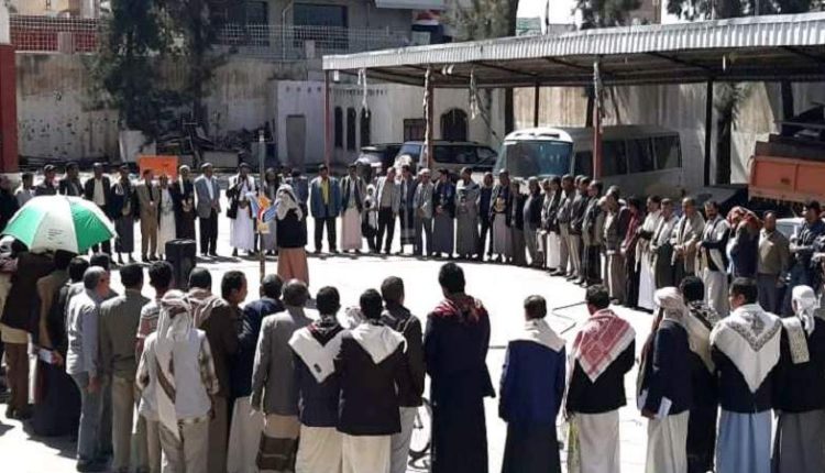 وقفة احتجاجية للإدارة المحلية تنديدا باستمرار العدوان في احتجاز سفن الوقود